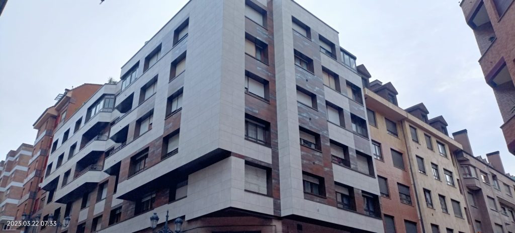 El edificio, cuya rehabilitación es objeto de este proyecto, es un edificio de viviendas situado en la C/Valentín Masip nº3 de Oviedo. La obra de rehabilitación energética ha consistido en la ejecución de una envolvente térmica mediante un sistema de Fachada Ventilada con revestimiento composite.