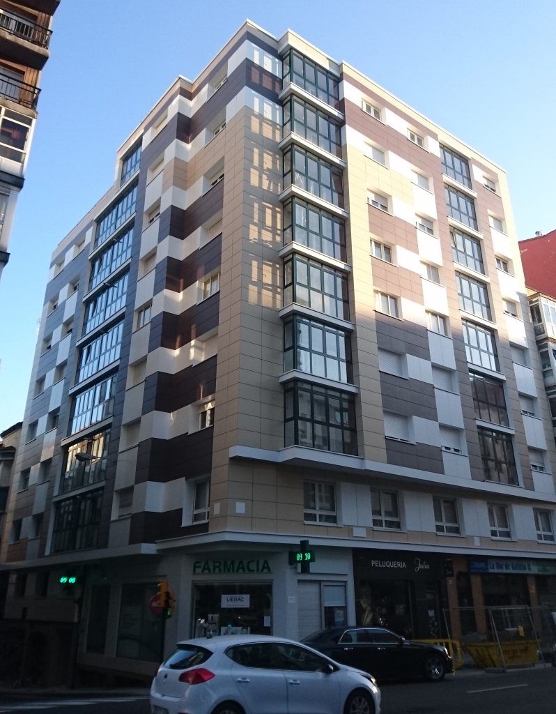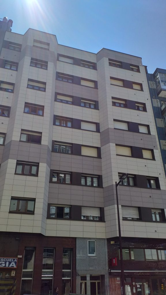 El edificio, cuya rehabilitación es objeto de este proyecto, es un edificio de viviendas con 9 plantas sobre rasante situado en la C/ Fuente del Real nº47 de Gijón. La obra de rehabilitación energética ha consistido en la ejecución de una envolvente térmica mediante un sistema de Fachada Ventilada con revestimiento combinado de gres porcelánico extrusionado y composite y un sistema SATE.