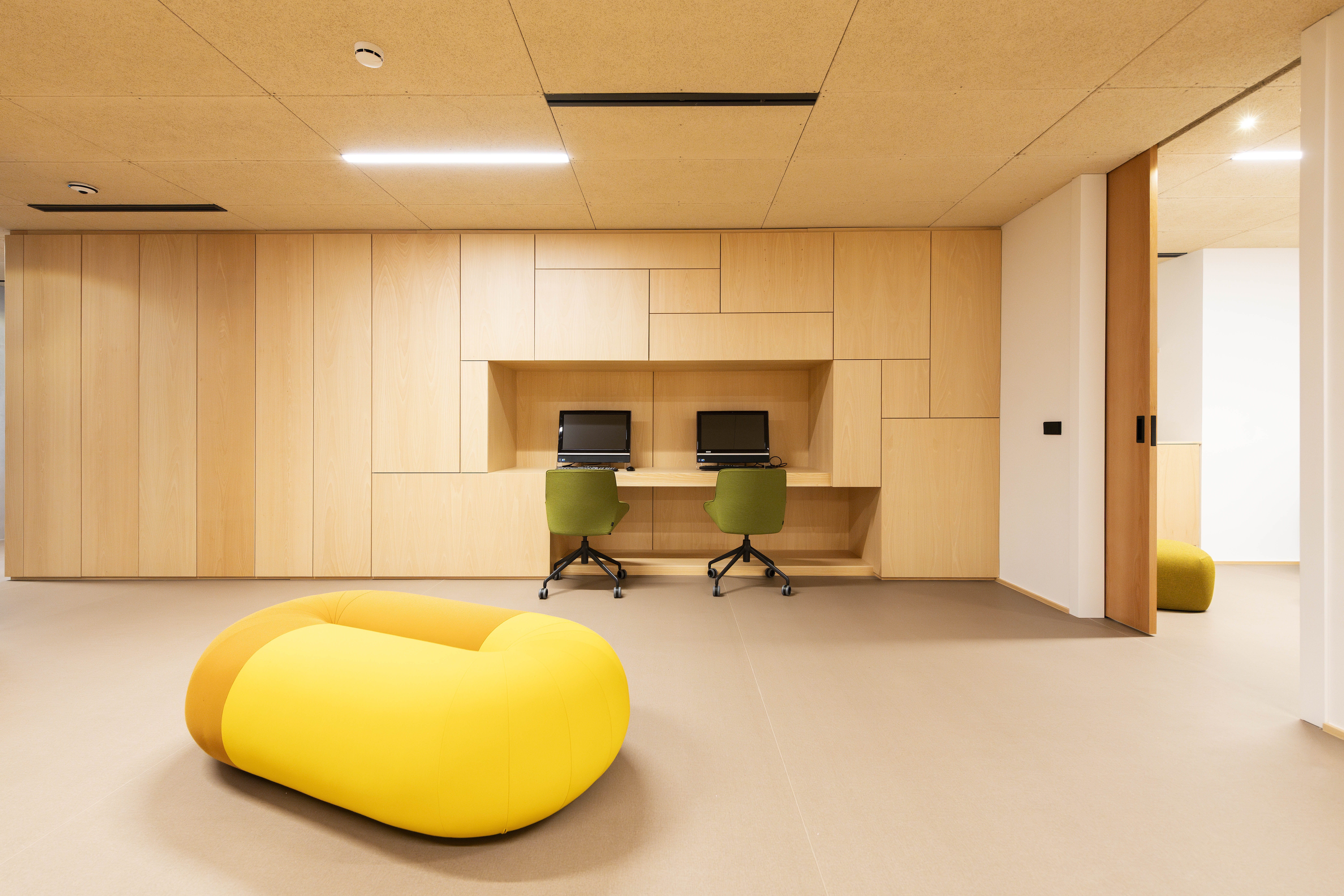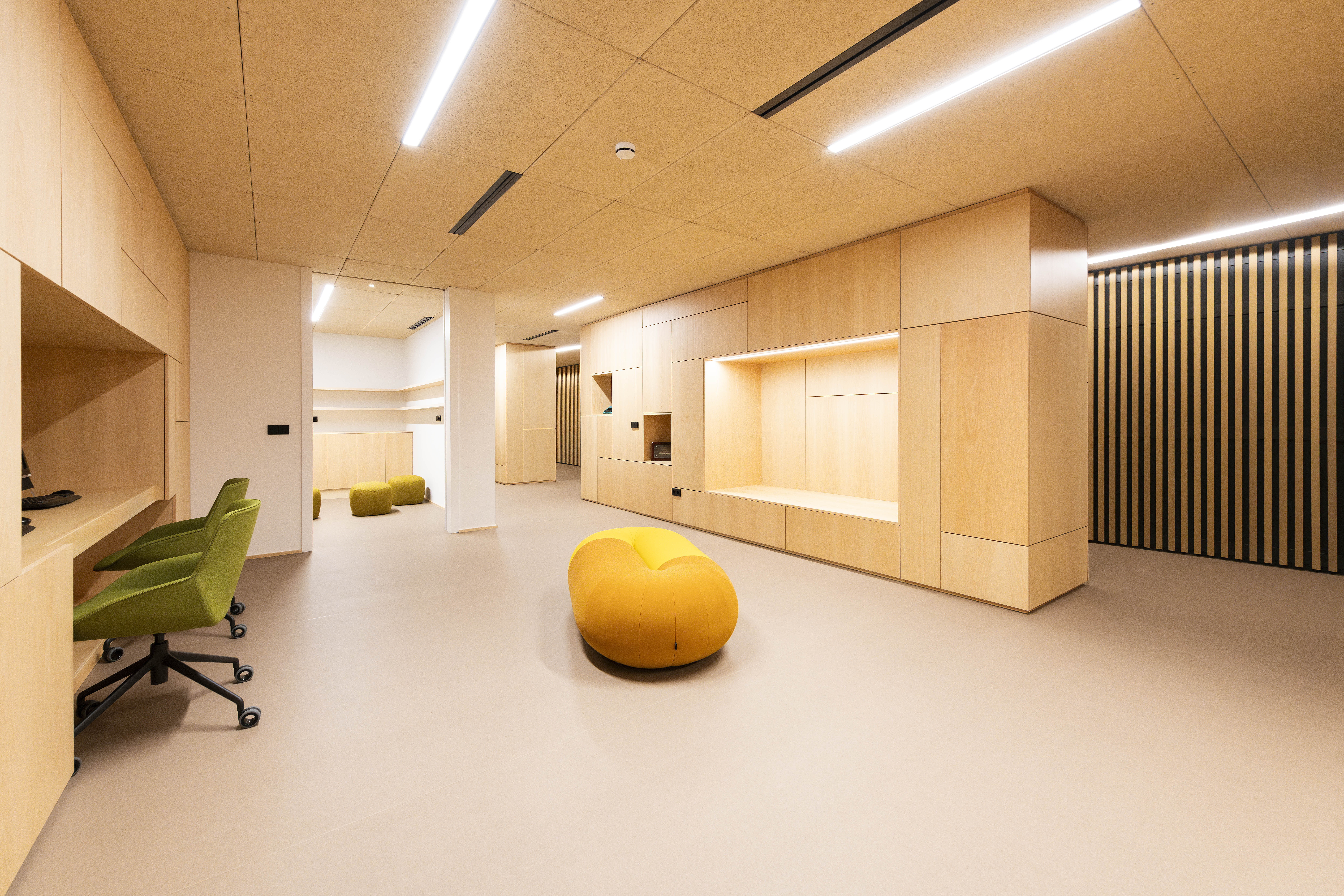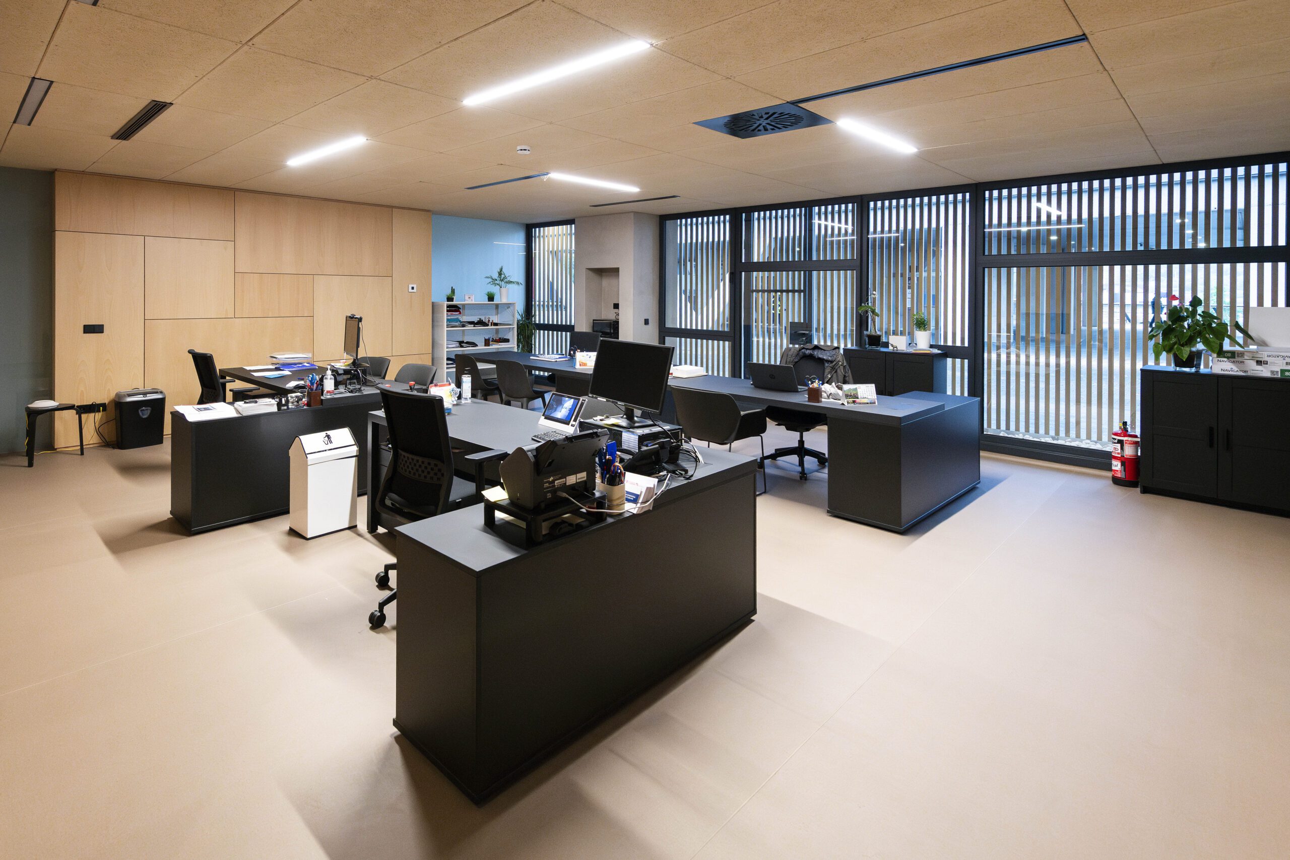 - Pavimento continuo vinílico en suelos interiores.