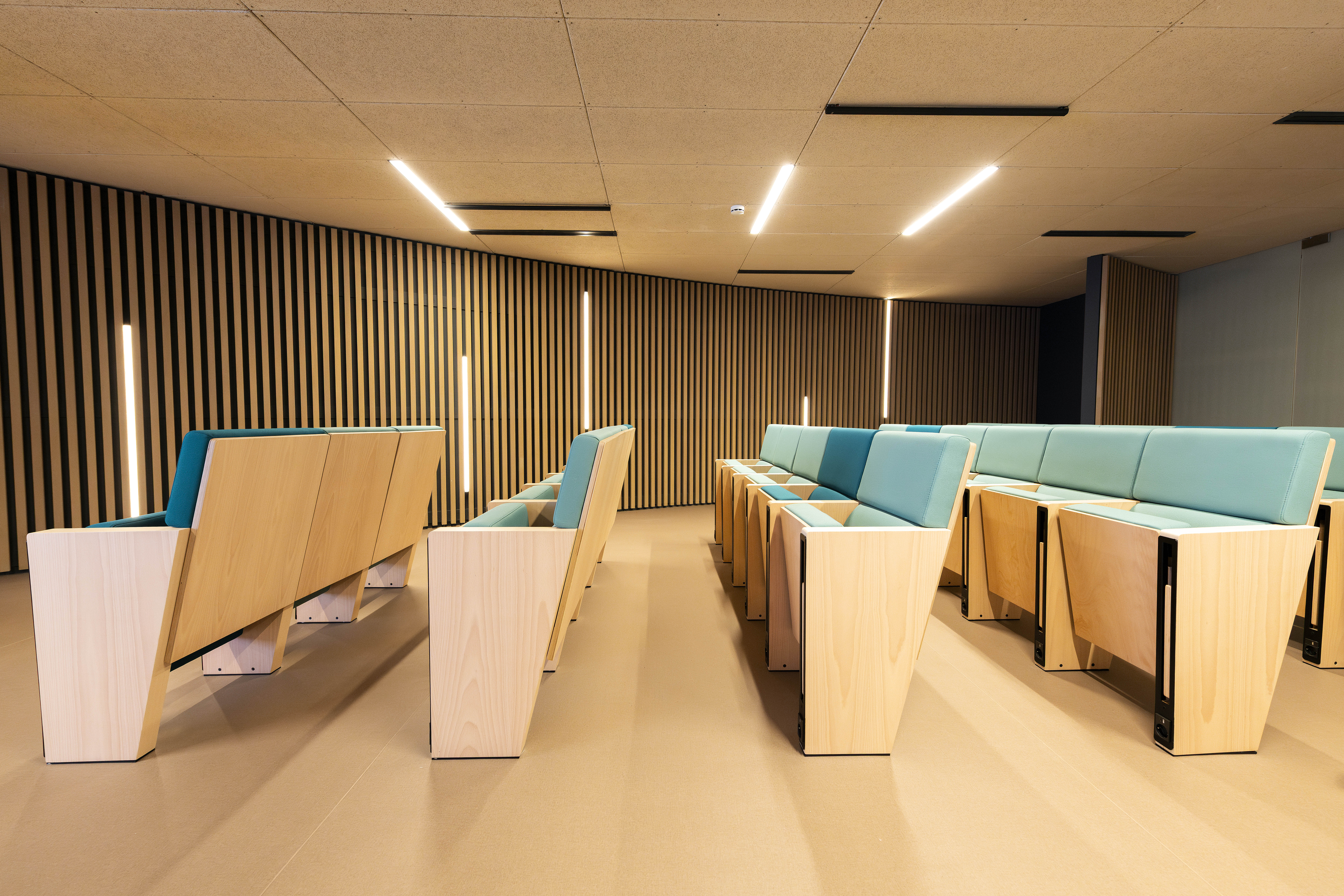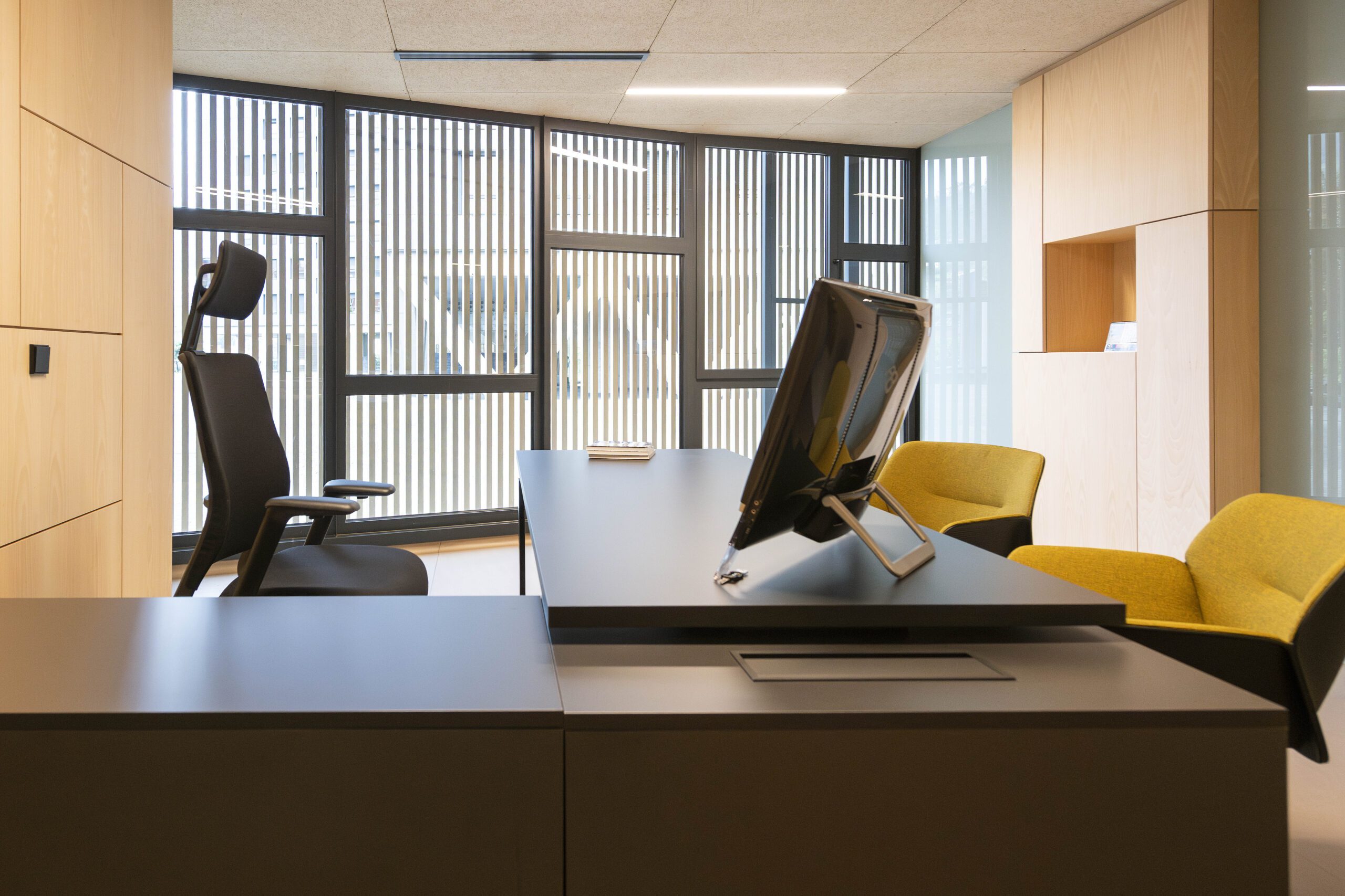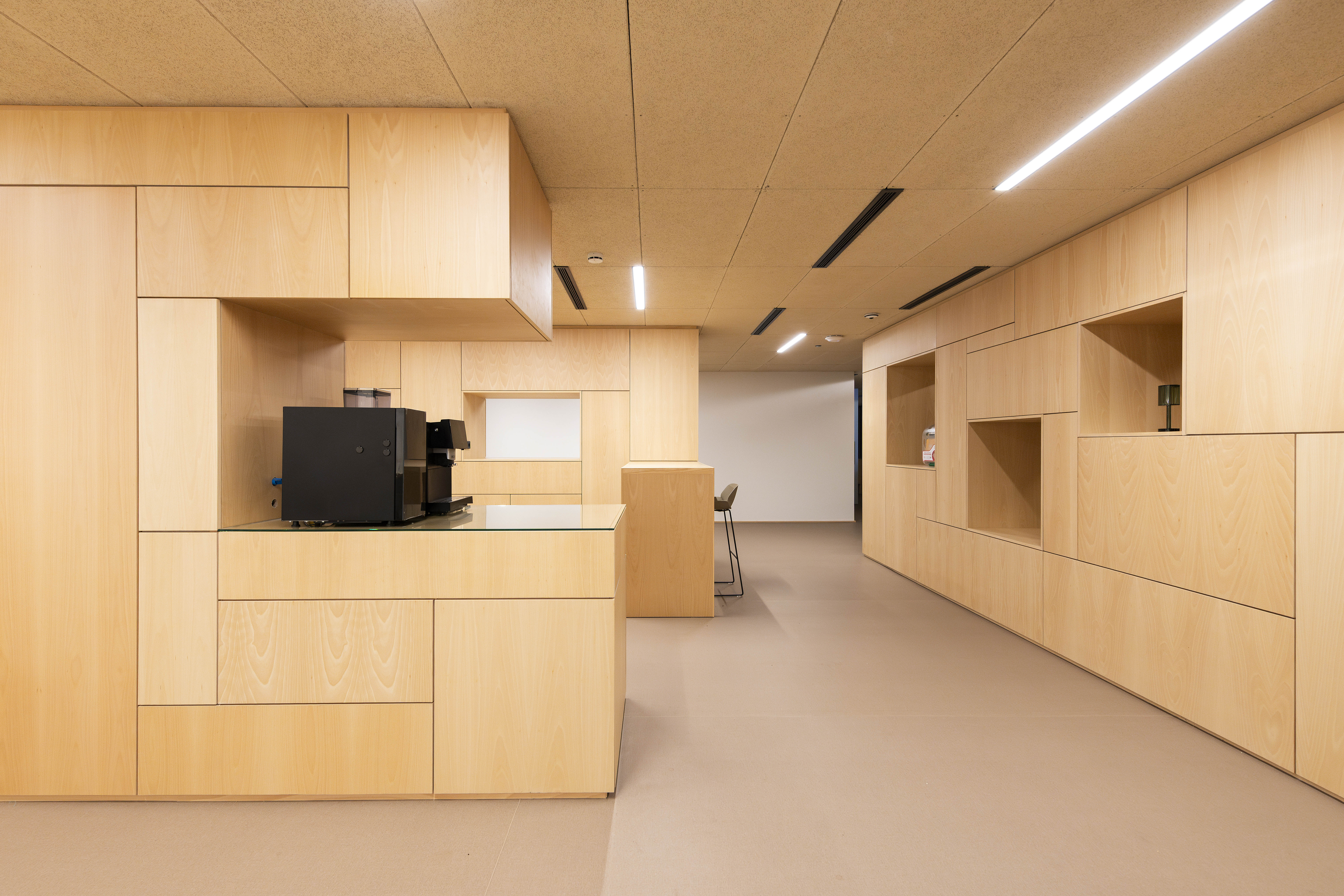 - Formación de armario divisorios en empanelado de paramentos verticales de haya – Tabiquería móvil multidireccional
