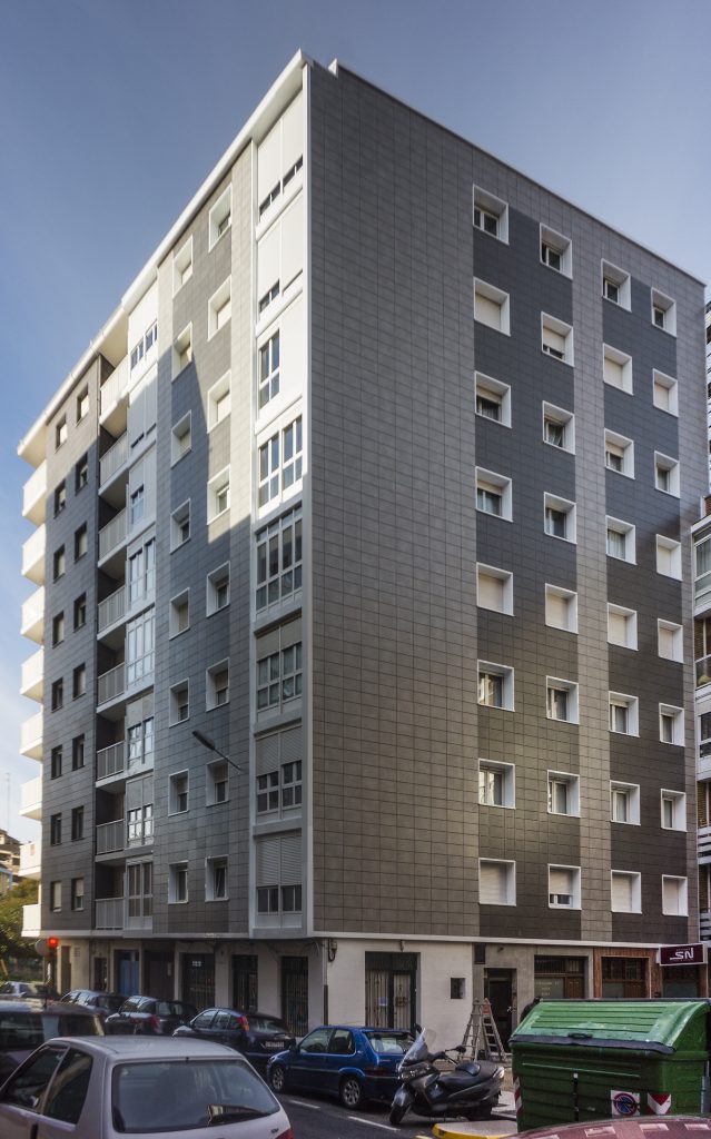 Rehabilitación energética mediante fachada ventilada y sistema SATE en la calle Pintor Orlando Pelayo 14 (Gijón)